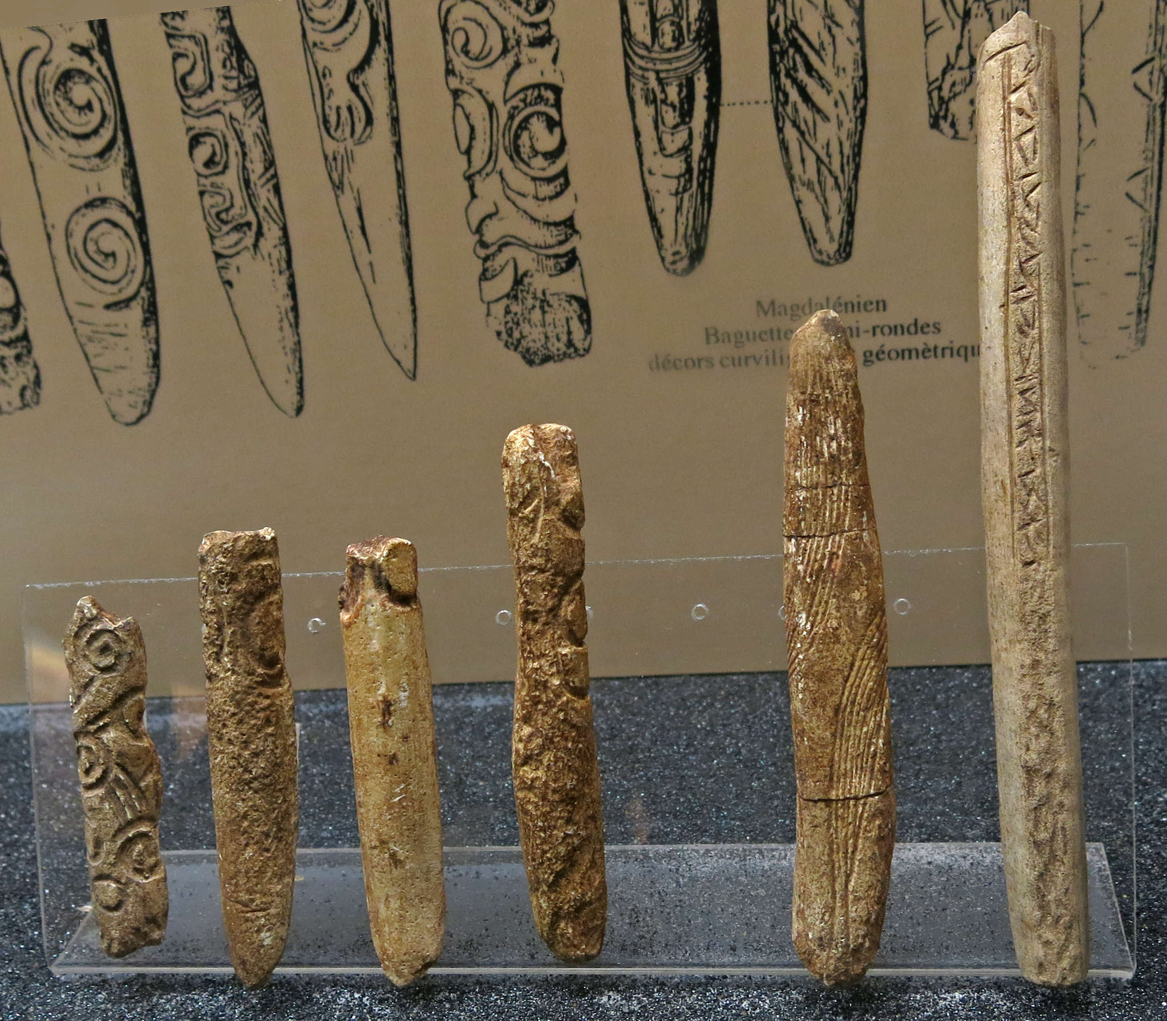 Baguettes demi-rondes engraved in spirals are characteristic of the Grotte d'Isturitz.