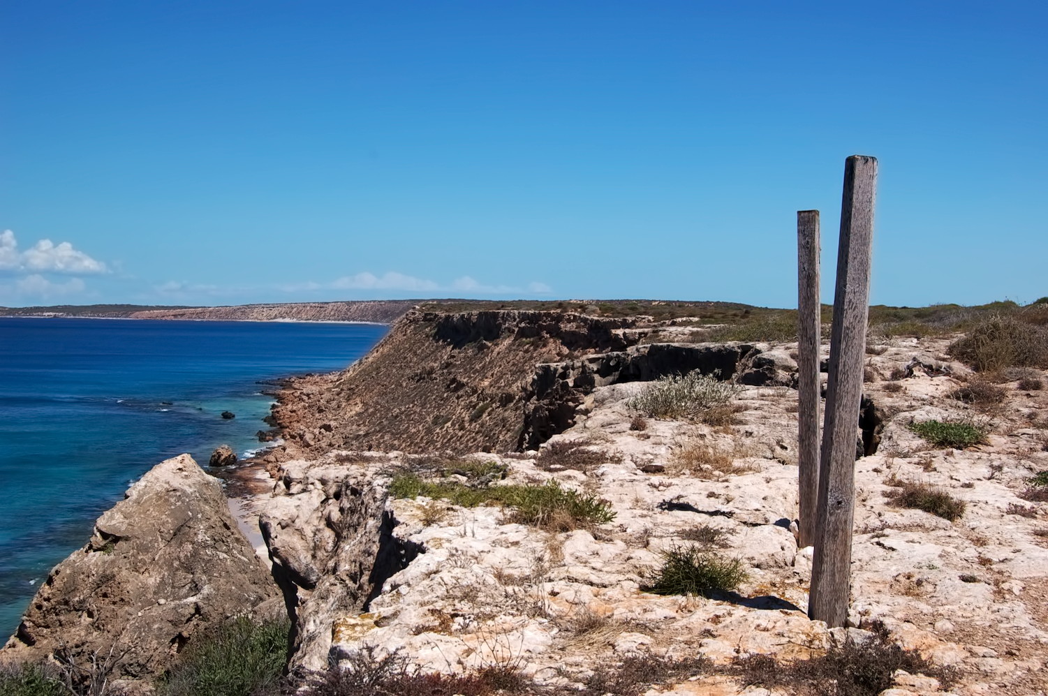 Hartog and Vlaminghs posts, probably modern facsimiles, at Cape Inscription.