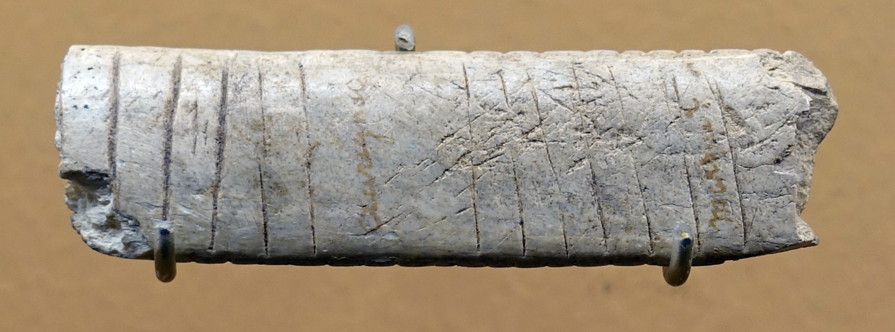 Engraved and notched bone.