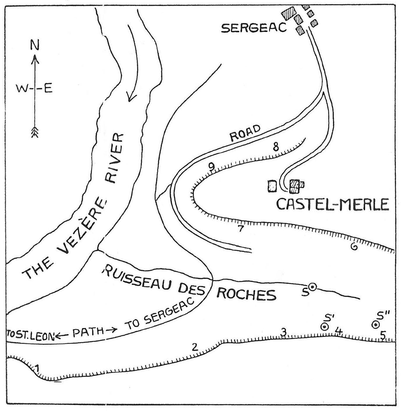 ( note that 1 and 2, Sous-le-Roc and Les Merveilles, have been switched in position when compared with all the other maps below, and according to my survey of the area - Don )
