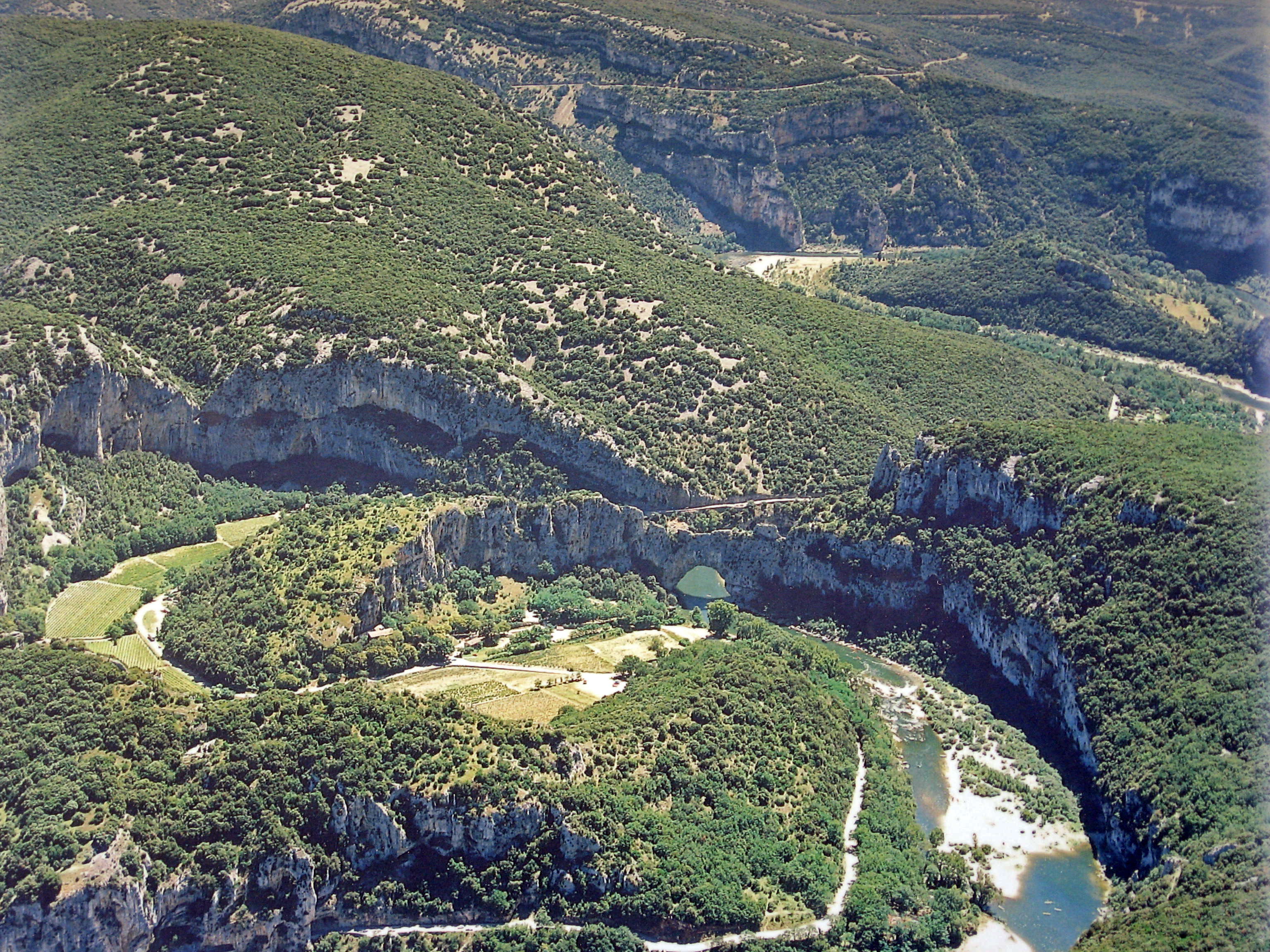Pont d'Arc and Grotte Chauvet, as seen from above.