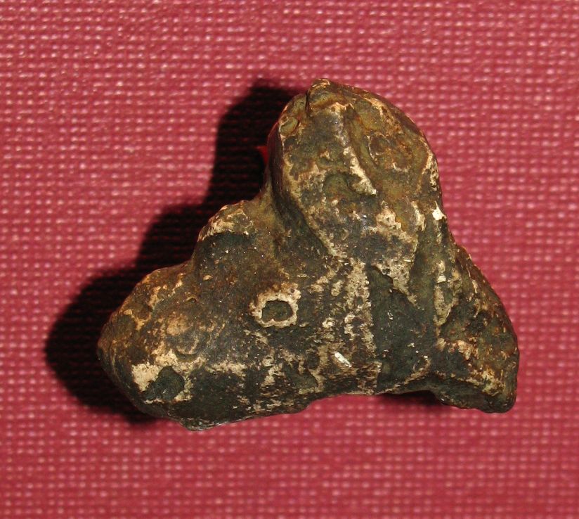 Zoomorphic pottery figurine, apparently the other side of the reindeer head above, cast from the same original.