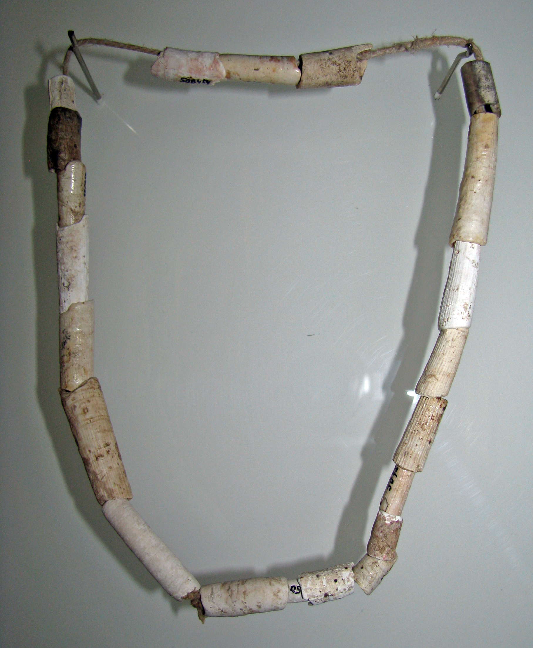 Necklace made of small perforated and decorated cylinders of mammoth ivory, Dolní Věstonice.