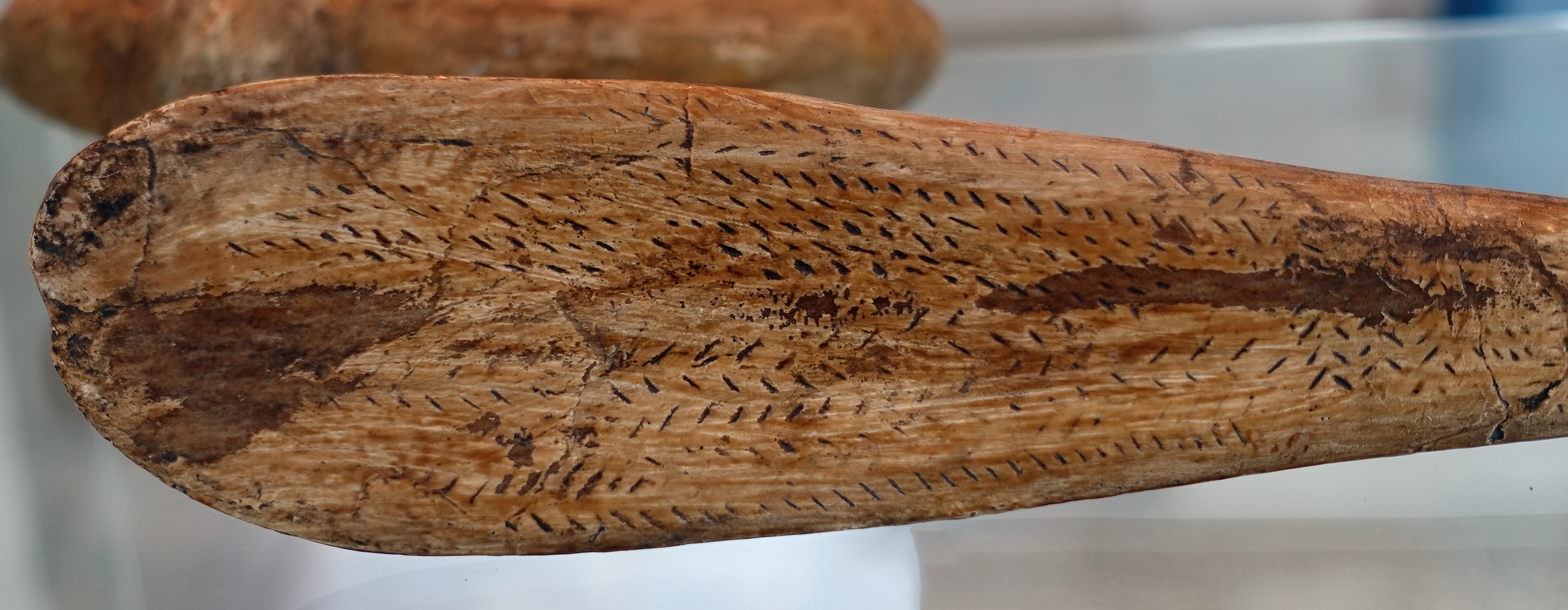 This mammoth tusk in the Dolní Věstonice Museum appears to be a replica of the original, on which the map was engraved, and