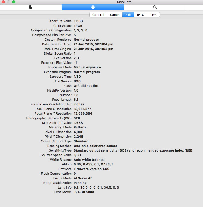 So how do I know what values for aperture, speed and ISO my camera has used on a particular photo?