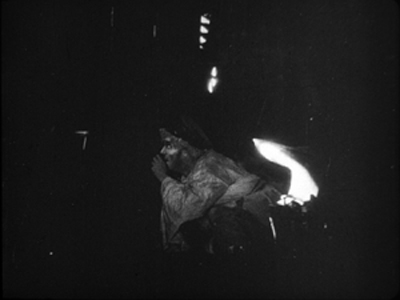 As with the jail in Jimmy Valentine, we have to read the characters’ emotions–chiefly, the desperation of the fleeing woman–from their body language. And as often happens, the more we have to strain to see the action, the more gripping it becomes.