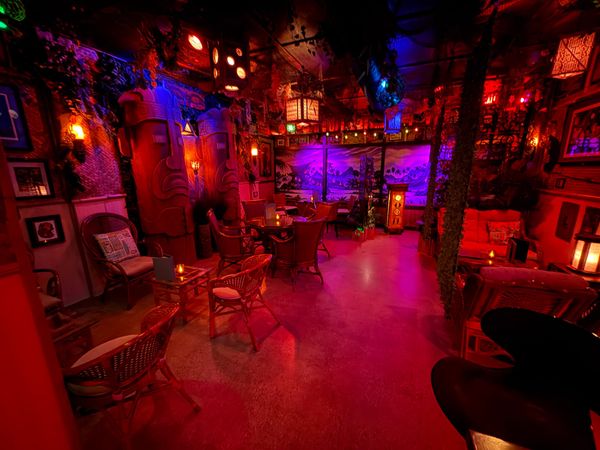 From the outside, only the sign and a few tiki decorations hint at what's inside the nondescript building.