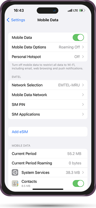 Your eSIM will be ready to use within a few minutes. If you need guidance, you can also call on 8970 or visit any Emtel showroom.