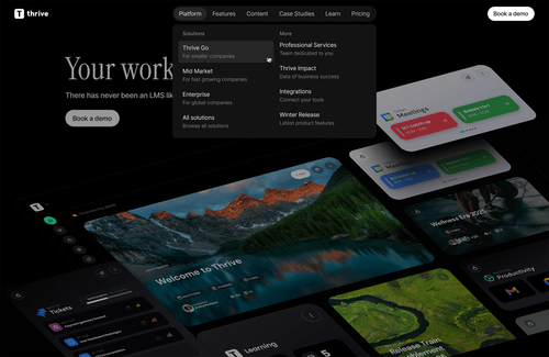 Website redesign for Thrive, enterprise LMS with over 500 customers and 5M learners on their platform.