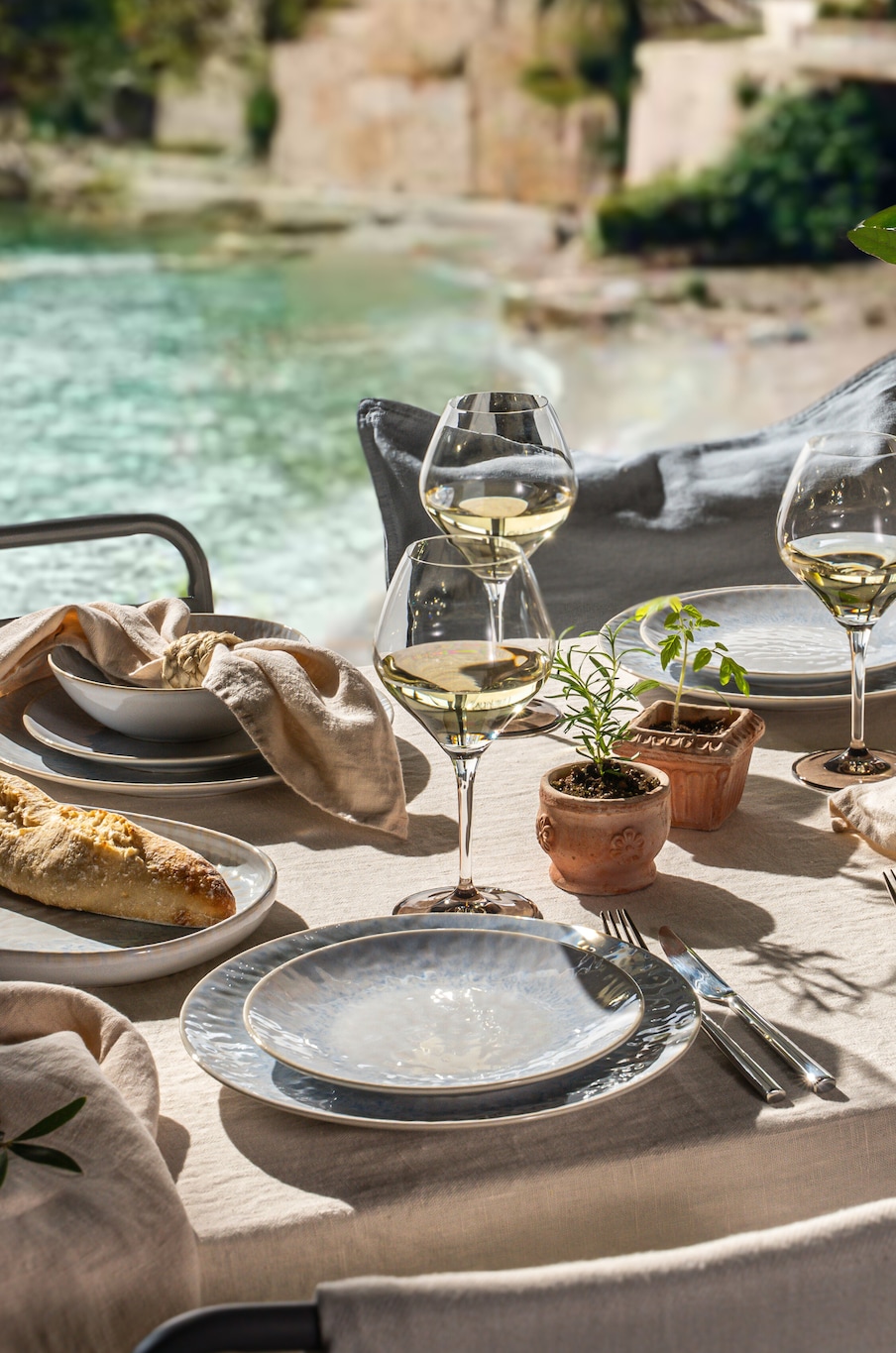 Kollektionen Côte d'Azur fångar den avslappnade känslan från Franska Rivieran. Tillverkad i Portugal av premium stengods med taktil hantverkskänsla, i färger som speglar det azurblå havet och sandens varma toner.