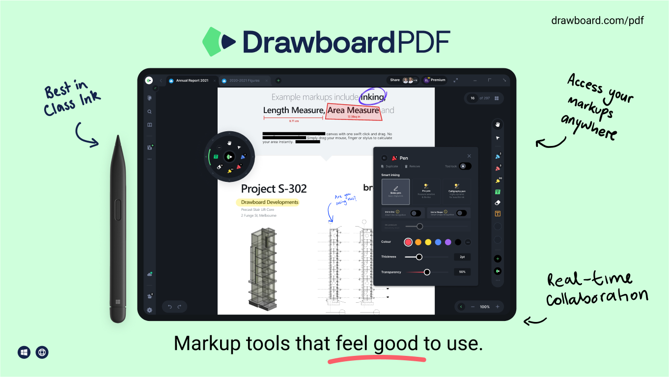 Drawboard PDF hace *todo* esto. Es, con mucho, el programa más completo que he encontrado (y he probado docenas). Mucho mejor que el propio producto de Adobe en este ámbito, que me pregunto por qué. Usarlo es muy fácil. Las funciones tienen sentido, y cuando intentas algo generalmente funciona como esperas. Este producto ha mejorado enormemente mi flujo de trabajo con mi equipo de diseño y construcción. Reseña recopilada por y alojada en G2.com.