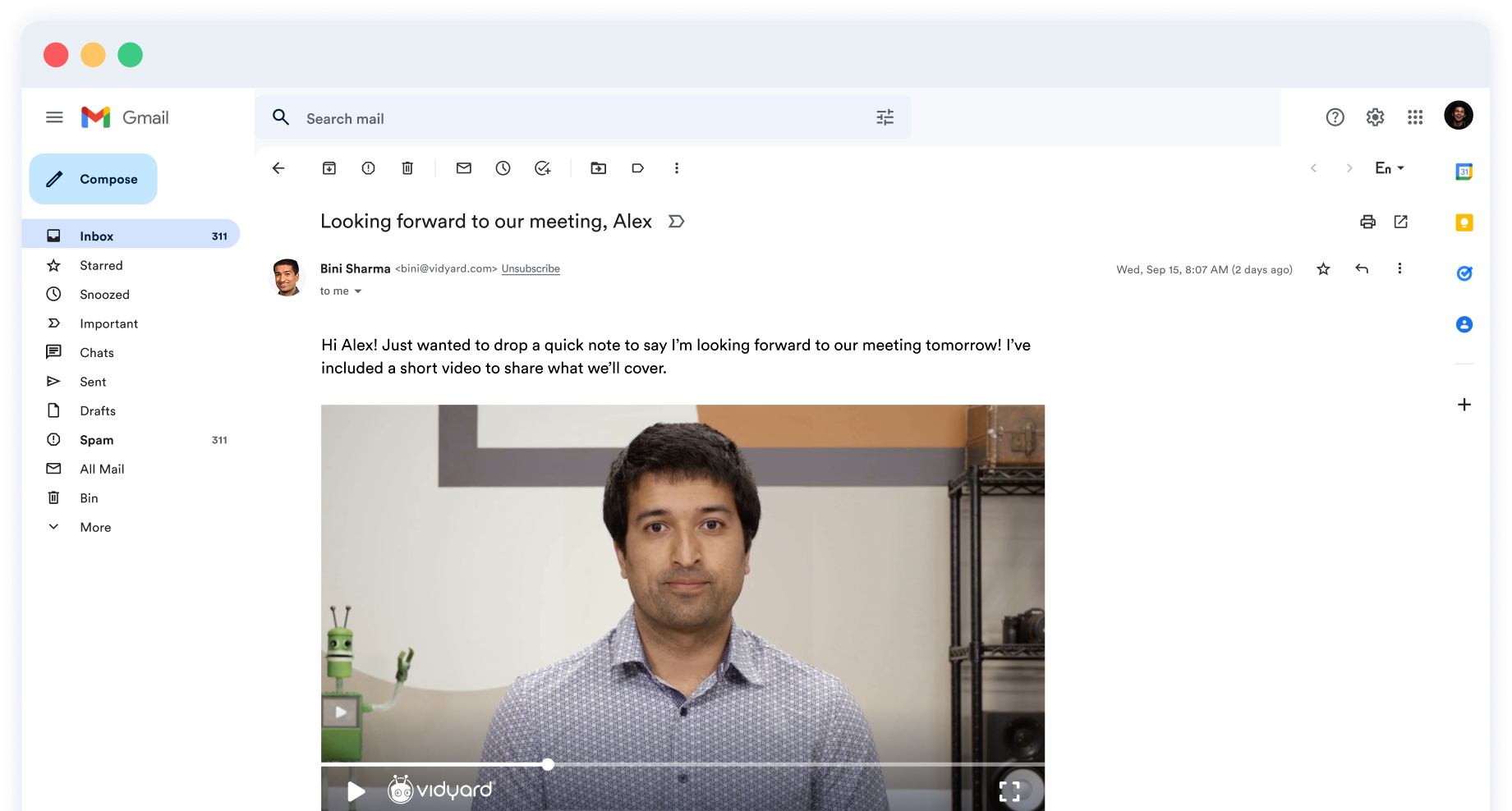 A diferencia de las herramientas de video tradicionales, Vidyard va más allá de la grabación. Con automatización, flujos de trabajo nativos de CRM y video generado por IA, los equipos pueden activar videos personalizados basados en acciones reales de los compradores, como reservar una reunión, descargar contenido o alcanzar una etapa del acuerdo. Esto asegura que cada punto de contacto se sienta oportuno, relevante y personal.
