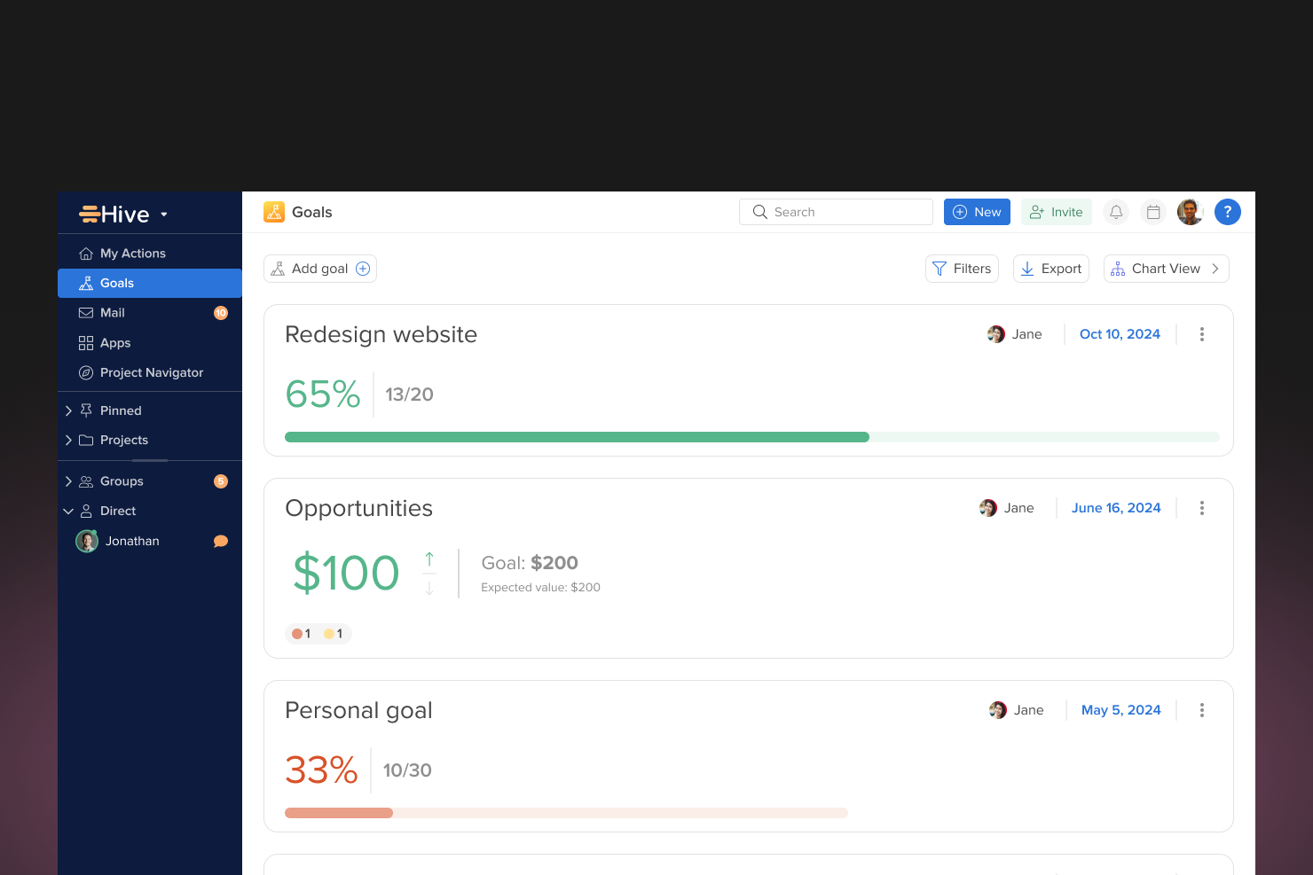 Set goals, visualize progress, and keep everyone aligned in one centralized platform.