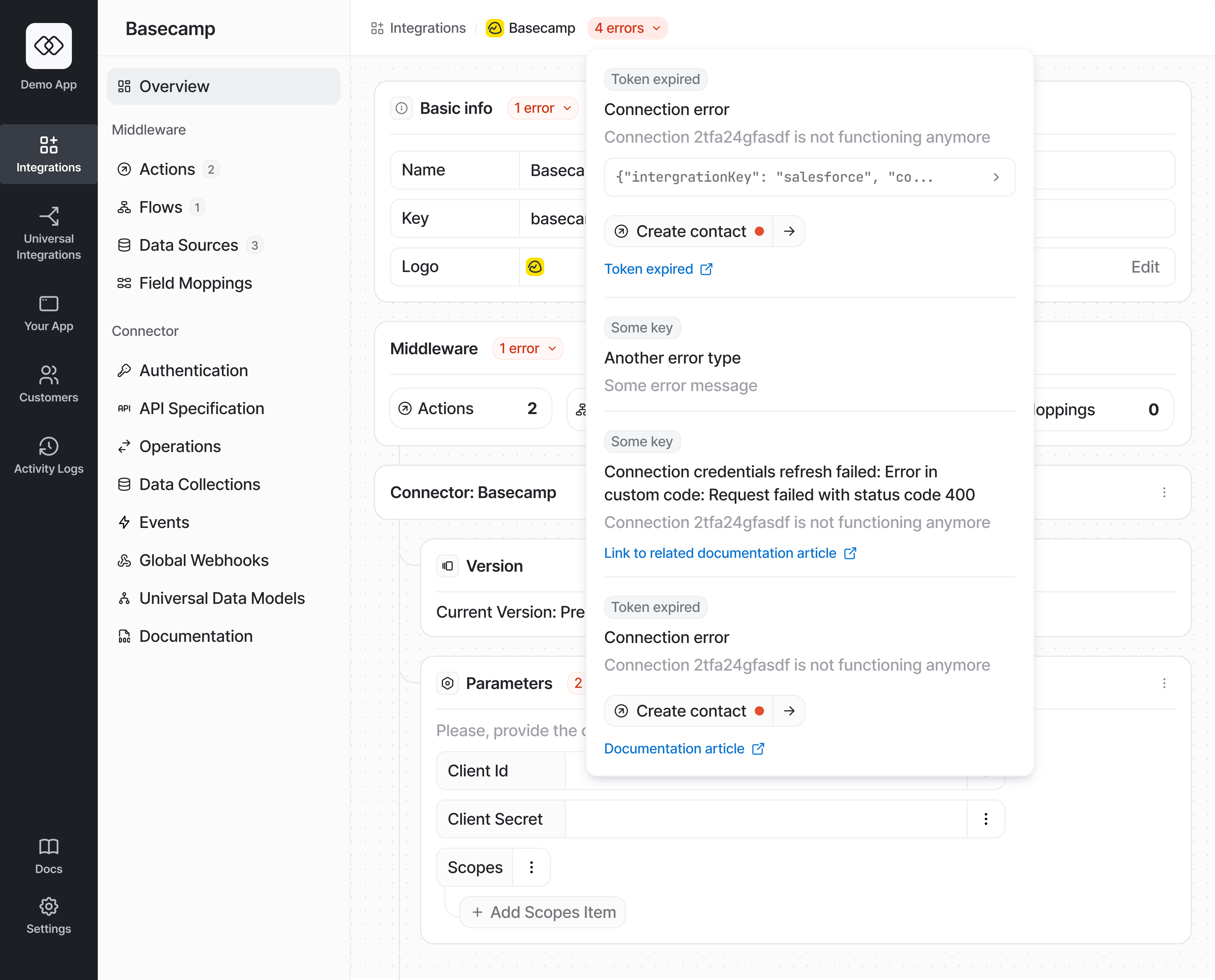 Le produit possède les constructions suivantes : Connecteurs, Sources de données, Mappages de champs, Schémas d'application, Tables de lien de données, Actions et Flux. Fondamentalement, vous définissez les schémas de votre application sous Schémas d'application, puis configurez les constructions restantes pour appliquer les transformations et mappages nécessaires. Vous pouvez également modifier les constructions de la même intégration au niveau du client si nécessaire, ce qui est génial. Ces constructions sont bien conçues et intuitives ! Après avoir exploré les différentes constructions, j'ai compris comment les utiliser en quelques heures. Dans les endroits où j'étais bloqué, j'ai pu m'orienter grâce à la documentation, et pour une aide et des clarifications supplémentaires, l'équipe m'a aidé rapidement via Slack. Étant une jeune entreprise, le produit s'améliore constamment en termes de mise en page et de fonctionnalités. Il y a quelques bugs d'interface ici et là, mais je n'ai rencontré aucun bug dans les intégrations en production.