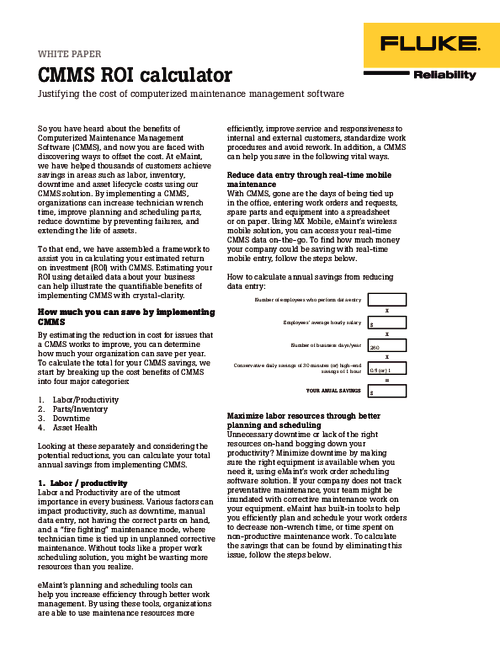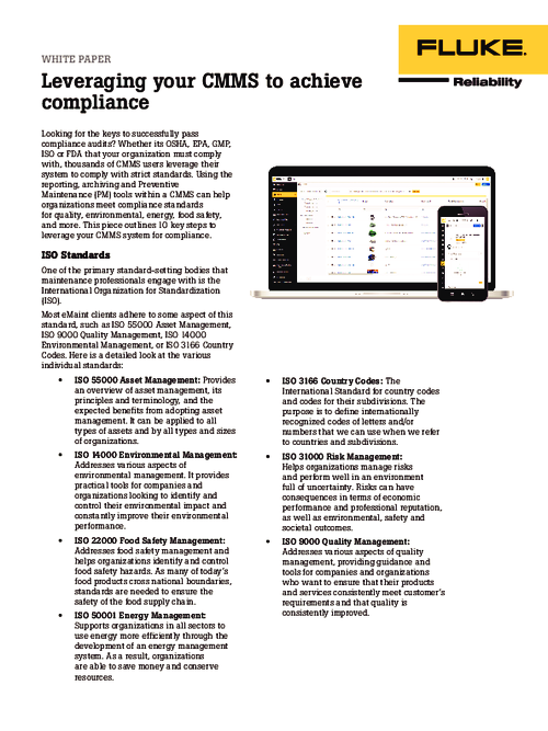 Lower equipment failure rates with eMaint CMMS and Fluke sensors