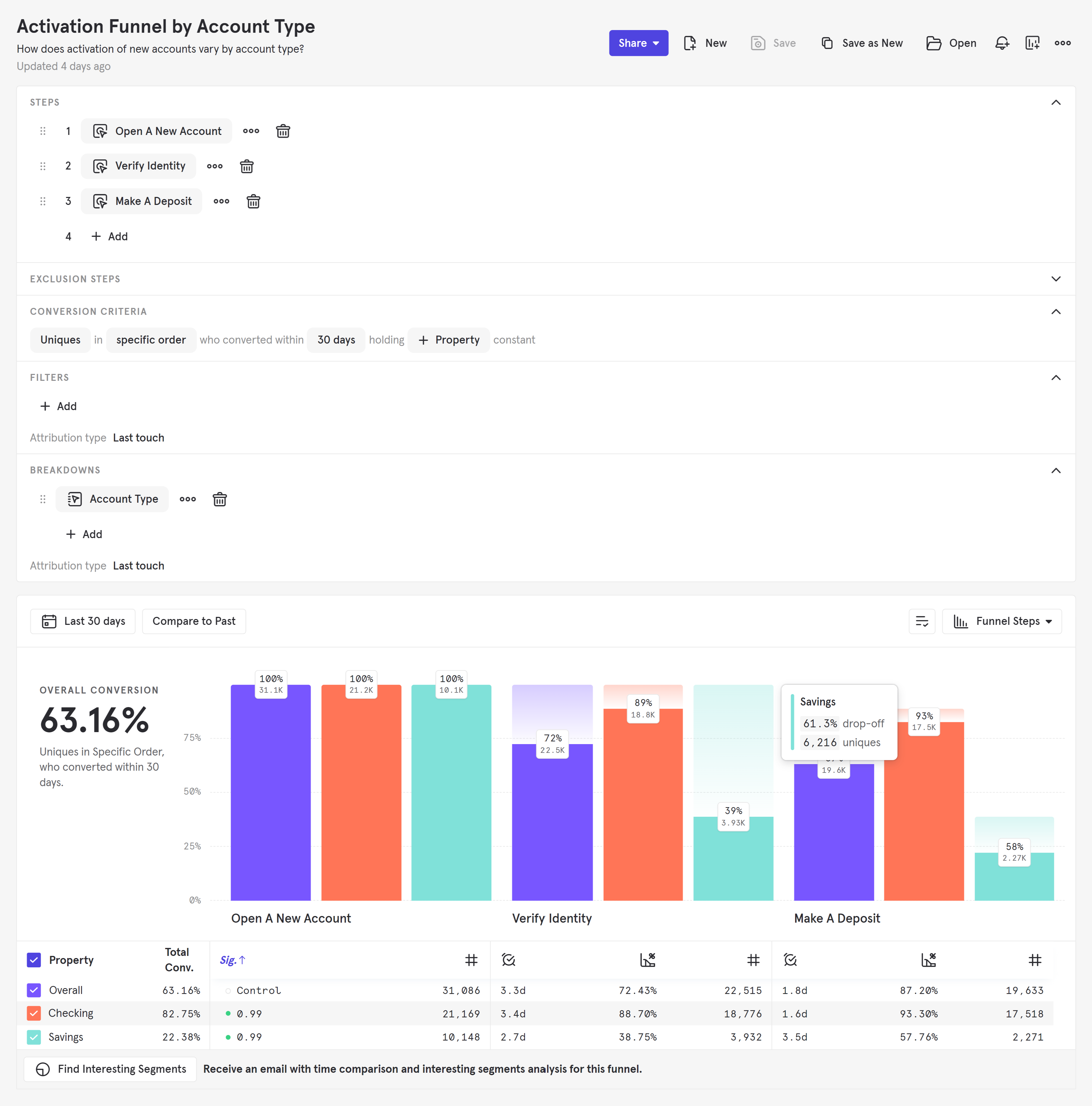 O que eu mais gosto no Mixpanel é como ele mostra claramente a atividade dos usuários. Posso ver o que os usuários estão fazendo passo a passo, como onde clicam, onde param e quais recursos realmente usam. Isso me ajuda a entender o comportamento real em vez de adivinhar. Também gosto que, uma vez configuradas as coisas, o painel de controle se atualiza automaticamente, então não preciso verificar os dados manualmente repetidamente. Os gráficos são fáceis de ler, mesmo para alguém que não é especialista em dados. Análise coletada por e hospedada no G2.com.
