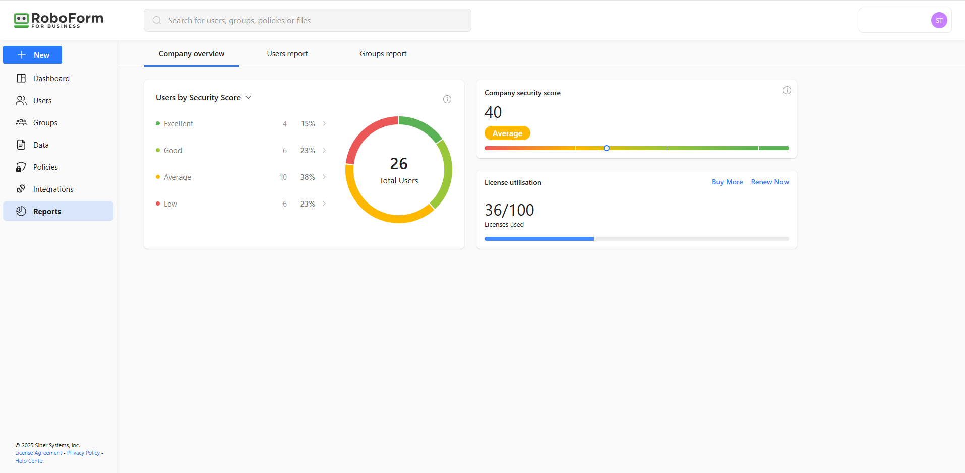 A funcionalidade principal do RoboForm inclui gerar e armazenar senhas fortes e únicas, salvar e preencher automaticamente credenciais, e permitir acesso contínuo com seu Login com Um Clique de classe mundial. As senhas são protegidas usando padrões avançados de criptografia dentro de cofres individuais seguros. O RoboForm também suporta o compartilhamento seguro de credenciais baseado em funções para facilitar a colaboração sem comprometer a segurança. Essas capacidades são respaldadas por trilhas de auditoria robustas, monitoramento de atividades em tempo real e relatórios detalhados — dando às organizações total visibilidade sobre o uso de senhas, conformidade com políticas e potenciais riscos de segurança.