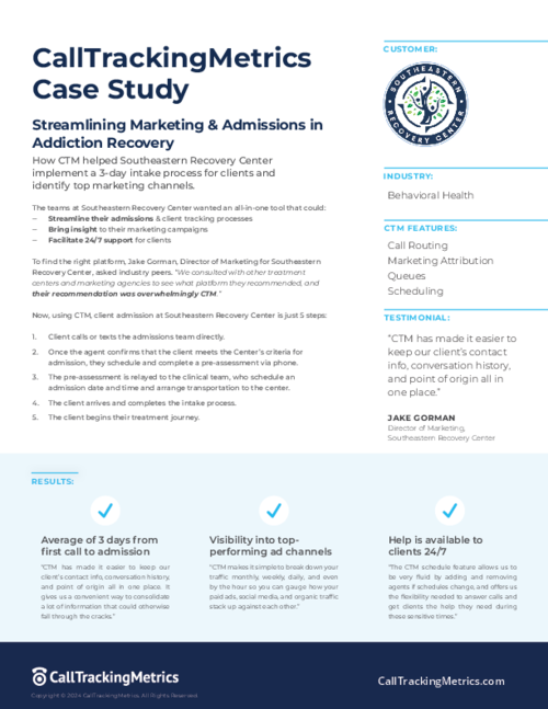 CallTrackingMetrics sert de pierre angulaire à notre mécanique d'attribution. Nous avons trouvé le système très fiable et adaptable, répondant à une variété de nos besoins. Avis collecté par et hébergé sur G2.com.