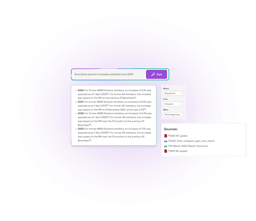 Find answers and the insights you need in seconds, using the power of AI across your knowledge