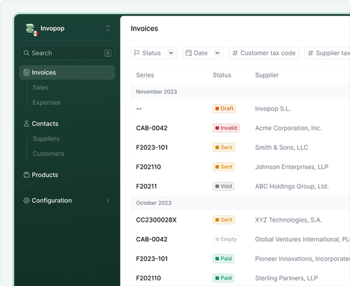 Wether you operate in several jurisdictions or want to offer invoicing to your customers, Invopop can help.