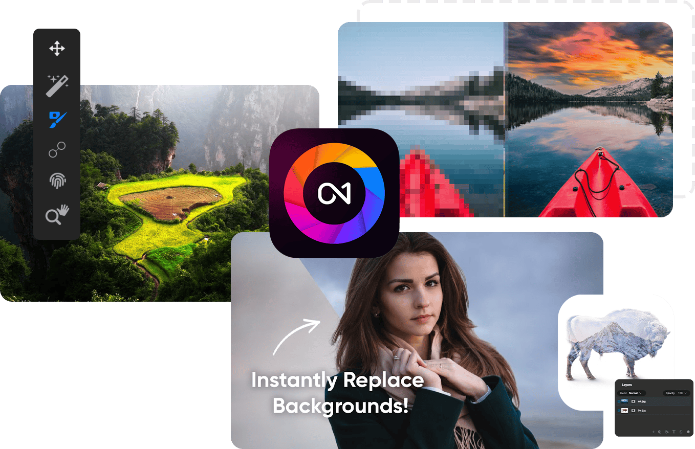 ON1's advanced AI tools make editing fast and intuitive—no steep learning curve required. Instantly swap skies, fix portraits, reduce noise, upscale for print, or apply precise edits with point-and-click masking. It's powerful, flexible, and designed for creative control.