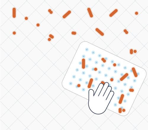 The bacteria trapped on the wipe are held by strong positive charge and won’t transfer to a new, uncontaminated surface, reducing cross contamination.