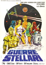 Silenzio in sala. Luci spente. Compare la scritta in blu “Tanto tempo fa in una galassia lontana lontana...”. Di nuovo il buio. E poi... bum! In mezzo allo spazio cosparso di stelle Il titolo STAR WARS a caratteri giganteschi invade il centro dello schermo accompagnato dal maestoso e trionfante tema targato John Williams una scritta in giallo oro procede dal basso verso l'alto sintetizzando gli ultimi avvenimenti. Poi una piccola astronave, inseguita e attaccata da un'altra più grossa, imponente, interminabile. Il resto è storia. George Lucas cambia il cinema per sempre con un film dal gusto retrò ma avanzatissimo coi tempi, dalle atmosfere da b-movie ma al contempo maestoso e pregevole, dal budget ridotto con risultati però da record. Nessuno credeva a George Lucas quando girava questo film dall'aria sperimentale e fallimentare, nemmeno i suoi attori. E invece Guerre Stellari è la prima pellicola a incassare centinaia di milioni nella storia, il caposaldo del blockbuster, esempio di produzione artigianale ma ambiziosa, un successo planetario che ha emozionato milioni e milioni di spettatori, ma anche influenzato un'intera generazione di registi. Motivo di tutto questo successo? Merito principale del regista va alla sua capacità di intuire che cosa coinvolge e colpisce lo spettatore, di toccare i tasti giusti per emozionare e colpire. Prima lo incanta creando un universo originale e meticolosamente strutturato, contaminandolo di astronavi, droidi, alieni pittoreschi, spade laser destinate a diventare icona, il tutto attraversato da uno sguardo romantico, fresco, epico, avvincente. Lucas mischia i generi: space opera, avventura, comicità slapstick, azione, dramma. E poi i fumetti, Tolkien, Kurosawa, i b-movie anni cinquanta. Inoltre i personaggi: Luke Skywkalker è il giovane sognatore impaziente e con tanti conflitti in cui ci si può identificare, la scena in cui scruta i due soli al tramonto è da antologia, l'emblema della giovinezza in un'inquadratura. Han Solo è l'uomo egoista, intrepido, sicuro di sé, affabile e coraggioso che invece vorremmo essere, impagabili tutte le sue battute. Darth Vader un cattivo cupo e misterioso dal respiro infernale, dal quale rimaniamo terrorizzati e affascinati allo stesso tempo. Obi Wan Kenobi è il saggio mentore che ci apre gli occhi, ci racconta di una misteriosa entità chiamata Forza, ci guida, ci fa da punto di riferimento, ci fa da padre quando ce ne manca uno. E poi la musica. Williams impiega il leitmotiv, ossia ogni personaggio e situazione ha un proprio specifico tema, in grado così di sensibilizzare e di coinvolgere maggiormente lo spettatore. Infine sequenze di battaglia spettacolari e duello epocale. Grande ritmo. Cosa chiedere di più? Non solo Guerre Stellari è un suggestivo film d'azione e avventura, ma contiene anche elementi di grande spessore del racconto. Lucas narra una storia fantasy moderna con tematiche che si svilupperanno meglio nell'episodio successivo. Inspiegabile certe scelte di doppiaggio (R2-D2 ad esempio diventa C1-B8). L'unico attore che farà carriera è il sornione Harrison Ford. Nel cast però sono presenti due veterani come Alec Guinness e Peter Cushing. La Forza ci cattura, ci penetra e non ci abbandonerà più, da quell'anno 1977 tutto è cambiato per sempre. Sei oscar strameritati per un film originale ma al contempo classico, imitato ma mai eguagliato. L'inizio (ma è il quarto episodio) di una saga colossale che nell'insieme forma il film più bello di tutti i tempi.
