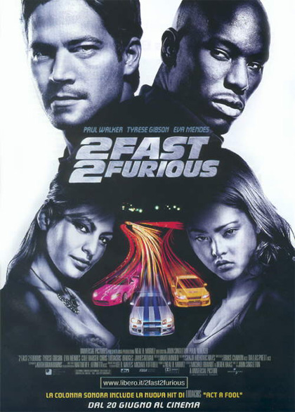 Brian (Paul Walker) ha la velocità nel sangue. Passione talmente esagerata da avergli fruttato l'esonero dall'FBI e averlo costretto a riciclarsi come criminale al servizio del boss di Miami Carter Verone. Decadenza degli eroi? Solo apparentemente: in realtà Brian, coadiuvato dall'altra infiltrata Monica, agisce sotto copertura per sventare un traffico di denaro sporco.E se per ottenere i propri scopi c'è da impegnarsi in duelli automobilistici mozzafiato, ad altissima velocità e tasso di scorrettezza, poco male... Sequel del film che ha lanciato Vin Diesel, 2Fast 2Furios riprende il prototipo esagerandone pregi e difetti. L'azione è ancora più adrenalinica (Singleton sa indubbiamente il fatto suo), le carrozzerie (delle auto e dei corpi degli attori) ancora più in risalto. Ma il film tratta unicamente di superfici, dimenticandosi completamente di dare un minimo di congruenza e continuità al racconto o di spessore ai personaggi, che sembrano ambire vanamente al fumetto. Risultato finale: un videoclip con occasionali interventi di trama. Ci si può divertire, a patto ovviamente di lasciare a casa il cervello.