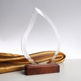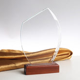 JNCT-194 Longwin Leaf-shaped Crystal Trophy with Wooden Base