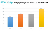 Εντυπωσιακή αύξηση 35% καταγράφεται στο συνολικό αριθμό των καταγγελιών που δέχτηκε το 2022 η Ανοιχτή γραμμή για το παράνομο περιεχόμενο στο διαδίκτυο SafeLine.gr του Ελληνικού Κέντρου Ασφαλούς Διαδικτύου του ΙΤΕ, σε σχέση με το 2021. Πιο συγκεκριμένα η SafeLine.gr δέχτηκε σχεδόν 12.000 καταγγελίες. Οι καταγγελίες για υλικό παιδικής σεξουαλικής κακοποίησης (Child Sexual Abuse Material – CSAM) – που είναι και το βασικό πεδίο δραστηριοποίησης της Γραμμής- παρουσιάζει αύξηση 114% σε σχέση με το 2021. Διαπιστώνεται μάλιστα και μέσα από τα στοιχεία του INHOPE-μέλος του οποίου είναι η SafeLine.gr και άλλες 49 γραμμές καταγγελιών σε όλο τον κόσμο- ότι όσο μικραίνει ο μέσος όρος ηλικίας των παιδιών που έχουν πρόσβαση στις νέες τεχνολογίες, τόσο το πρόβλημα γιγαντώνεται. Τα δεδομένα μετά τα lockdown δείχνουν ότι τα παιδιά αρχίζουν την ενασχόλησή τους με τον ψηφιακό κόσμο σε όλο και μικρότερη ηλικία. Τα κορίτσια είναι εκείνα που σύμφωνα με τα στοιχεία του INHOPE διατρέχουν το μεγαλύτερο κίνδυνο.