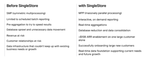 Challenges this customer faced before SingleStore; advantages it is gaining with SingleStore