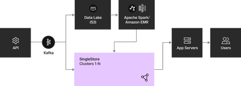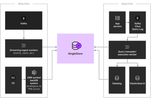 Customers create some definitions, e.g., “This particular slice of my data is interesting,” that Heap cannot serve quickly with hash indexes because they require Regex or something else that would run slowly. So the team is now routing those requests through a Materialization system that kicks off a Spark job to get all the relevant records from its Data Lake and flow then into SingleStore to benefit from SingleStore’s blazing-fast ingest throughput.