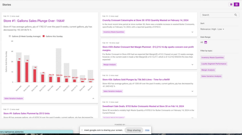Transcending conventional reliance on visual representations and statistical charts found in reports and dashboards, RightSense offers interactive narratives that are rich in context, making them more memorable, compelling, and convincing. This not only fosters improved data literacy but also encourages participation across the organization, thereby boosting productivity. Such interactivity effectively amplifies the value derived from data, ensuring a better return on data assets.