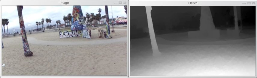 cv::imshow("Depth", depthDisplay);And that’s all we need! You can now build and run the application. You should see on your screen the two following windows: “Depth” and “Image”.