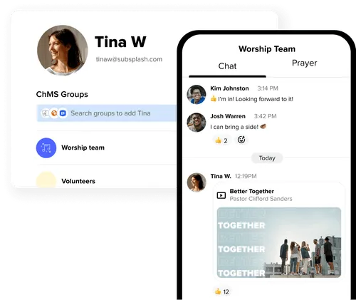 Leverage in-app messaging with Subsplash to connect groups—even groups that are defined in another database.