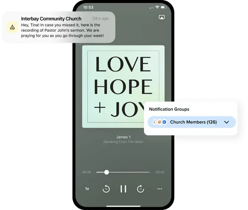 Push notifications work with groups to keep segments of your community informed and engaged.