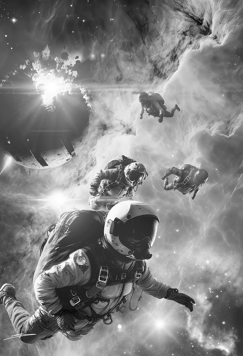 - mehrere Illustrationen zum ersten interaktiven Fortsetzungsroman mit dem Titel Die galaktische Kreuzfahrt, geschrieben von Peter Terrid (1998)