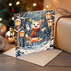 If you're as excited about winter and snow as this little kitty, let him carry your holiday wishes to all the people on you Christmas card list. These 5 x 5 inch, high quality paper cards come pre-folded, packed in cello sleeves per 10 cards, and includes a white envelope for each card. Works well with regular ballpoint pens after short drying time.