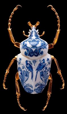 19 Jaz box ideas | blue and white insect art, unique beetle art pieces, majolica beetle
