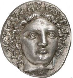 Tetradrachm from Pheneos in Arcadia, c. 360-350 BCE, showing Demeter. Electrum coin from Phokaia in Ionia, 468 BCE.