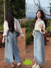 Jeans Skirt Outfit Korean