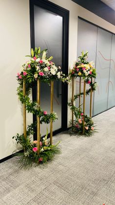white columns are lined up against the wall