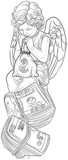 Angel With Money Bag Tattoo Stencil