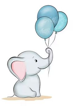 Cute Elephant Holding A Balloon