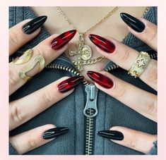 Black And Red Almond Nails