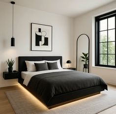 Modern Bedroom With Black And White Bed