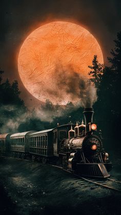 Train At Night With Moonlight