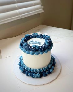 Blue And White Birthday Cake
