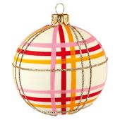 Cute Christmas ornament illustration element for tree. Pink and red Xmas ball, bauble, hanging toy hand drawn illustration. Winter holiday season decoration sticker