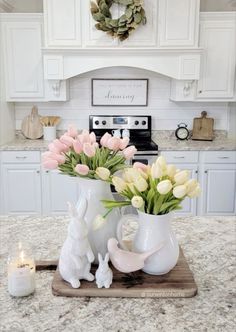 Spring Kitchen Decor With Flowers And Bunnies